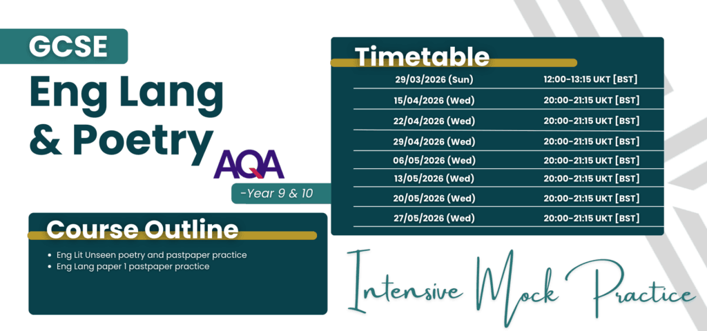 Our AQA GCSE English Language Group Class is designed according to the latest 2026 AQA exam format. This exam-oriented course focuses on AQA-specific content and exam skills, with an emphasis on analysing past papers and identifying question trends. You will learn highly practical techniques to excel in the exam, supported by our exclusive star-quality notes, including Grade 9 exemplar answers!