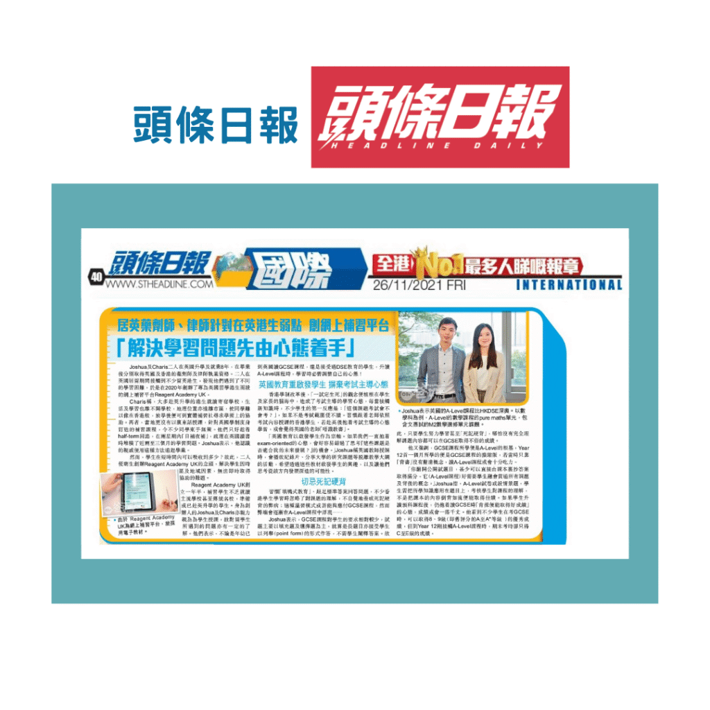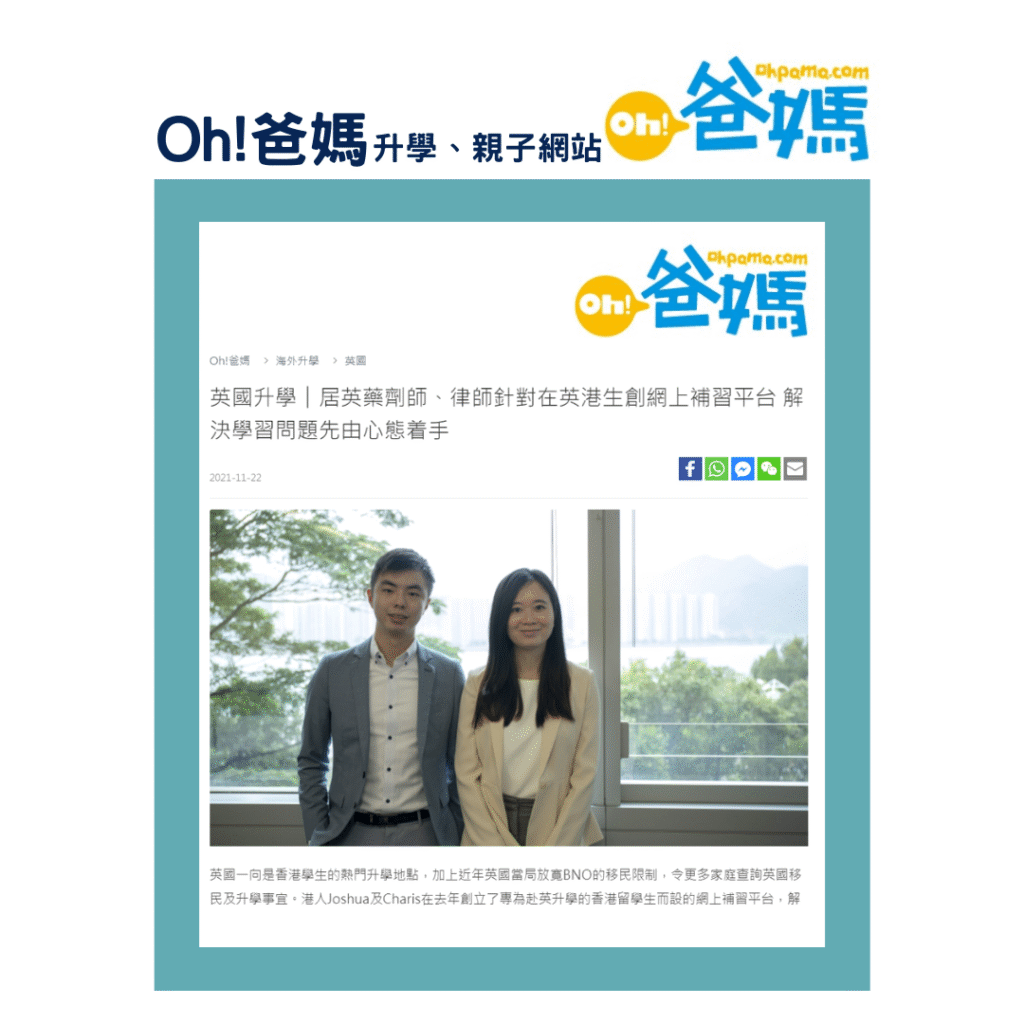 居英藥劑師、律師針對在英港生弱點 創網上補習平台 解決學習問題先由心態着手