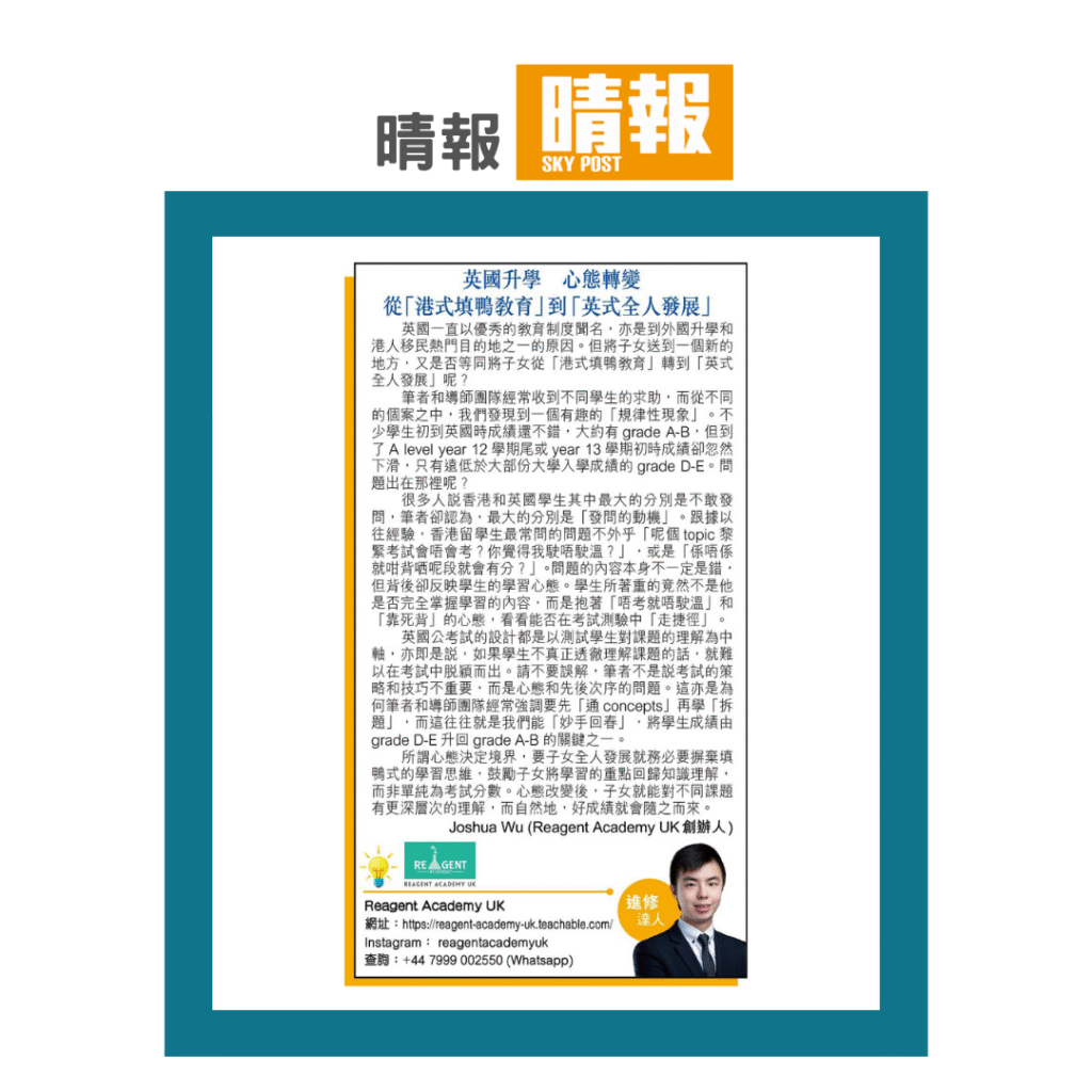英國升學 心態轉變 從「港式填鴨教育」到「英式全人發展」