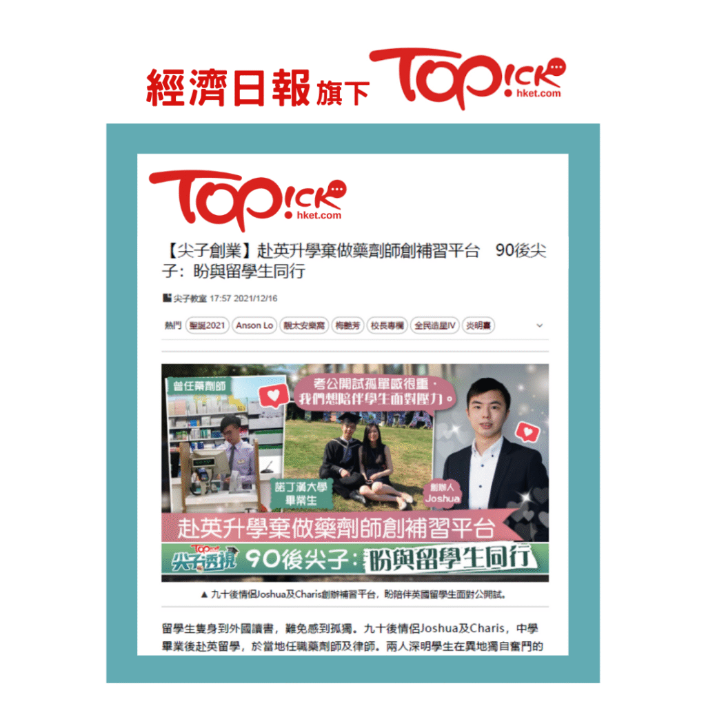 【尖子創業】赴英升學棄做藥劑師創補習平台 90後尖子:盼與留學生同行